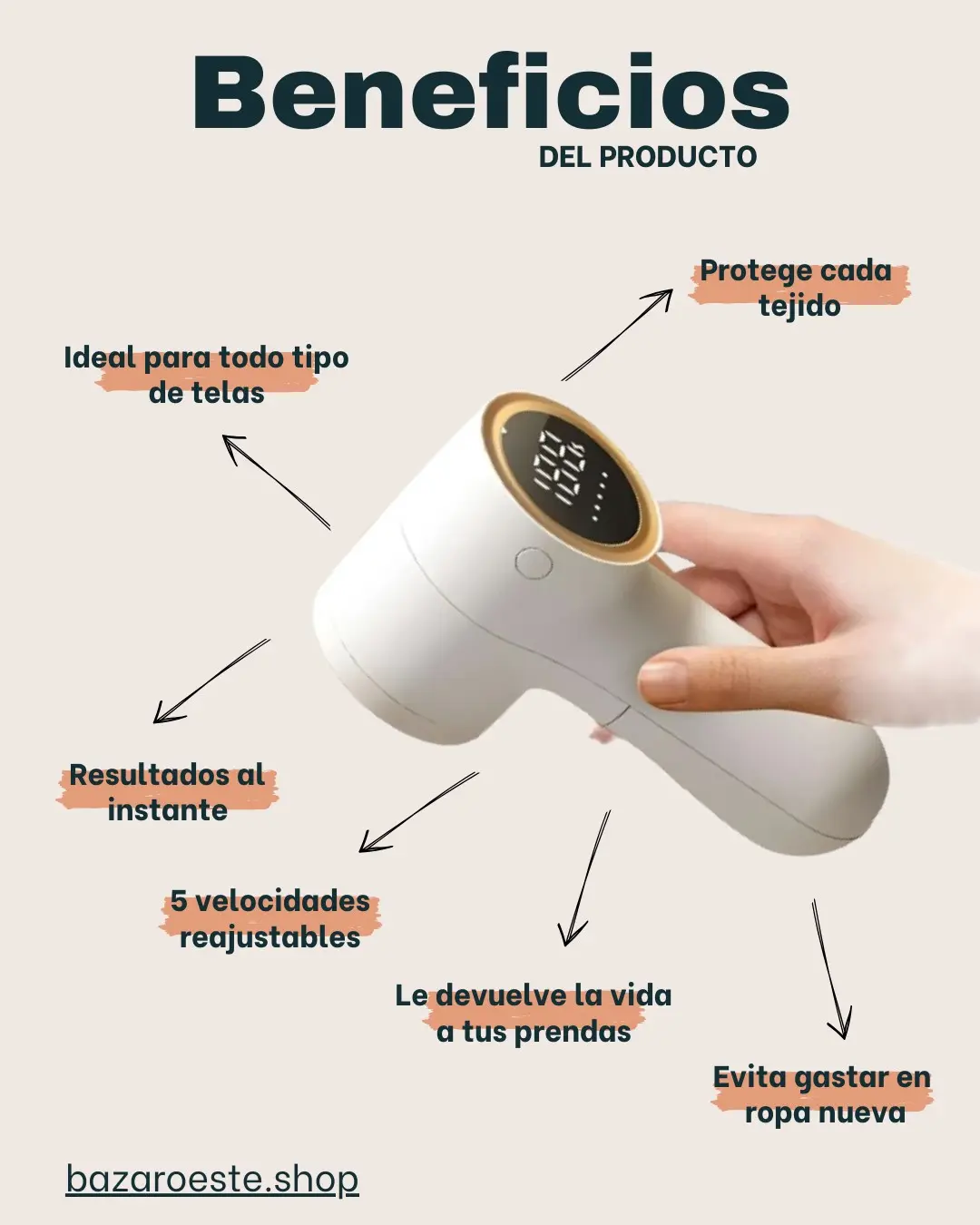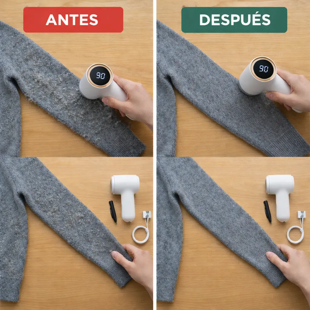 Su sistema de cuchillas protegidas de acero inoxidable, corta y aspira las pelusas de forma precisa, cuidando cada prenda y devolviéndole un acabado prolijo y renovado